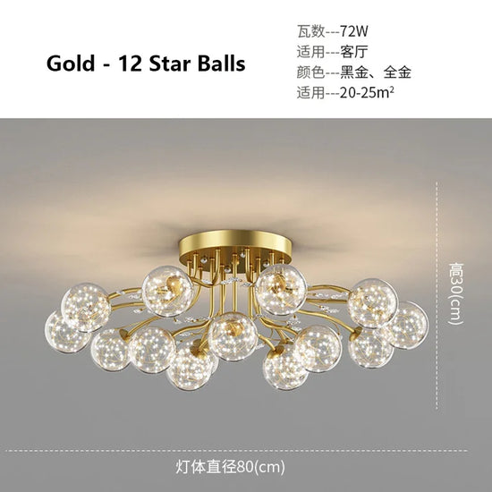 Lustre en Boule de Verre Nordique Doré: Luminaire Décoratif d'Intérieur