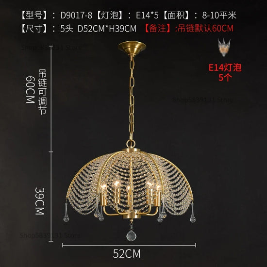 Lustre en Cristal et Cuivre Style Nordique pour Toute la Maison