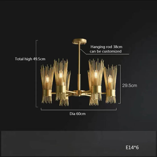 - Finition en cuivre poli : Offrant une allure sophistiquée et raffinée, ce lustre est à la fois un objet d'art et de fonctionnalité.