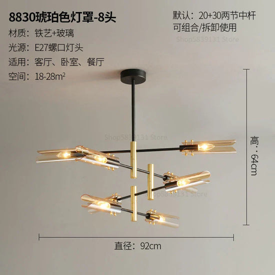 Le lustre en verre au design nordique et créatif ne se contente pas d'être un simple luminaire. Il se distingue par sa capacité à se fondre dans divers styles de décoration, qu'il soit moderne, classique ou scandinave. Son design innovant et sa structure en métal peint en fer accentuent sa robustesse tout en offrant un look chic et industriel. Capable d'éclairer une surface de 5 à 10 mètres carrés, ce lustre est plus qu'un élément de décoration - il est le point focal qui illumine votre vie quotidienne.