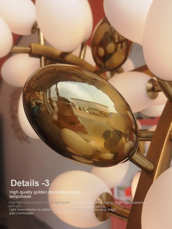 Plongez dans l'univers du luxe postmoderne avec notre 'Lustre en verre blanc de luxe postmoderne'. Ce luminaire exceptionnel est un véritable chef-d'œuvre de l'art moderne, combinant à merveille des matériaux de qualité supérieure et une conception innovante pour créer une pièce qui ne manquera pas de rehausser l'esthétique de votre intérieur. Avec son design unique rappelant une grappe de raisin, ce lustre procure un éclairage doux et chaleureux, idéal pour toute pièce de votre maison.