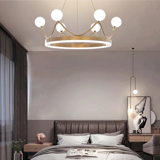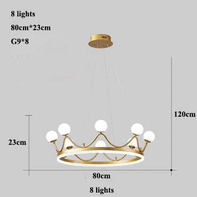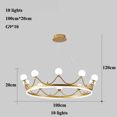 Transformez votre intérieur avec notre lustre LED couronne style moderne décoratif suspension. Que vous envisagiez de moderniser votre salon, d'apporter une touche de sophistication à votre salle à manger, ou de créer une ambiance chaleureuse dans la chambre de vos enfants, ce lustre est l'ajout parfait à n'importe quel espace. Sa finition en or poli et son design élégant apporteront instantanément une note de luxe et de modernité. Ce lustre est non seulement une source lumineuse bien pensée mais aussi une œuvre d'art suspendue qui se marie harmonieusement avec divers styles de décoration intérieure, qu'ils soient contemporains ou classiques.