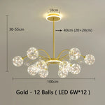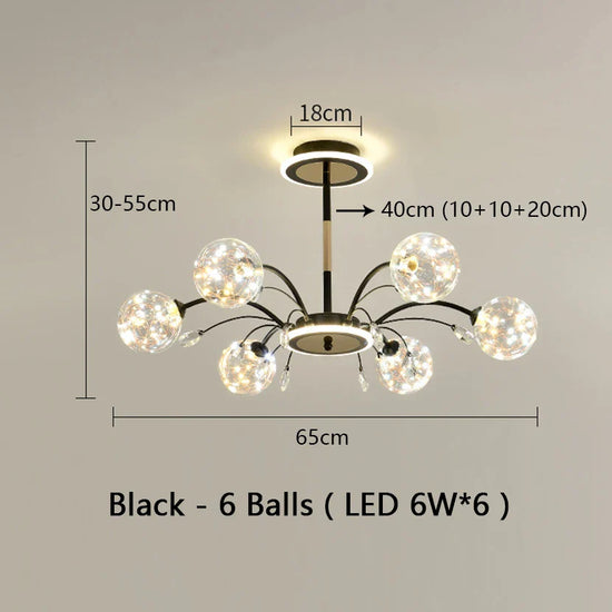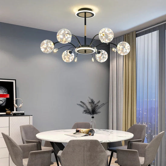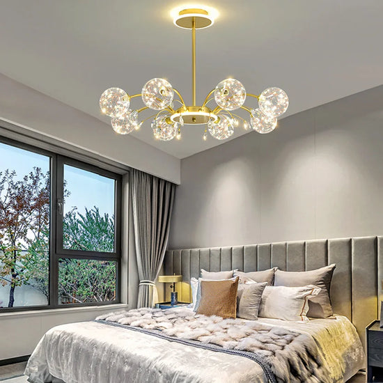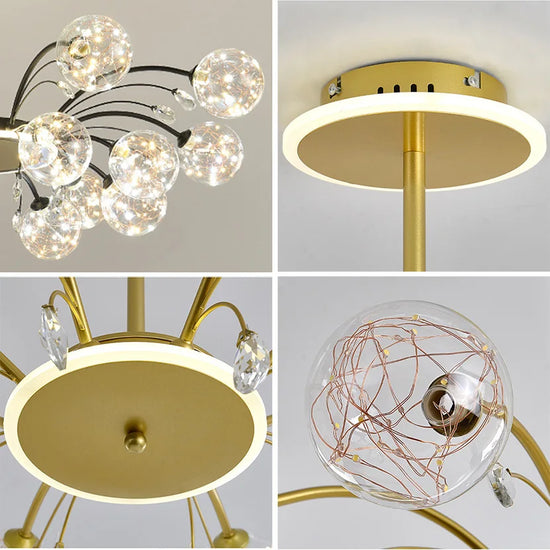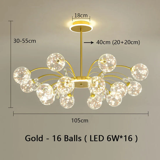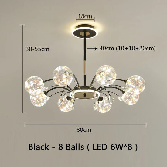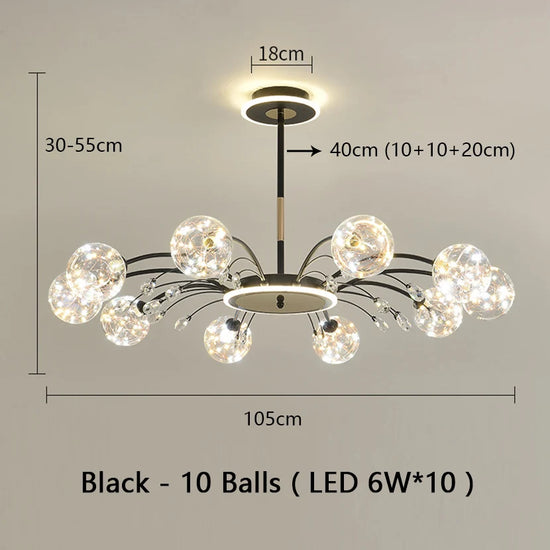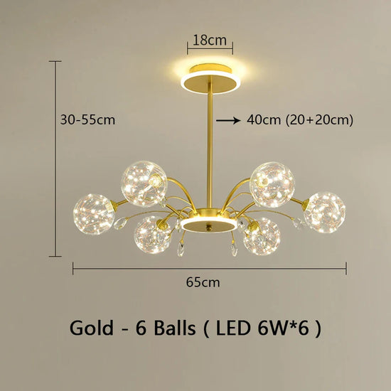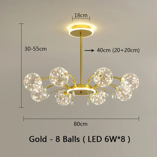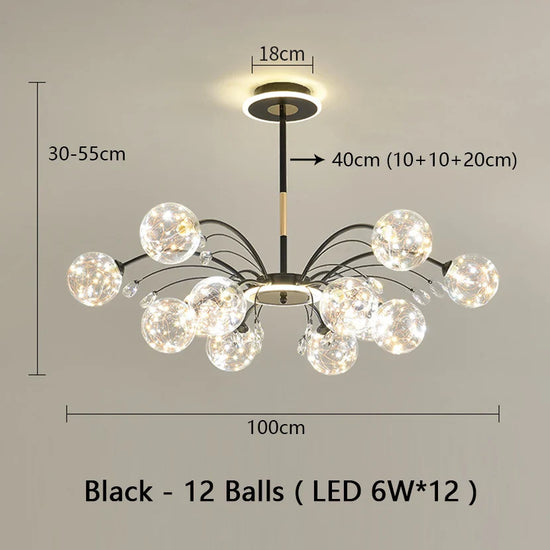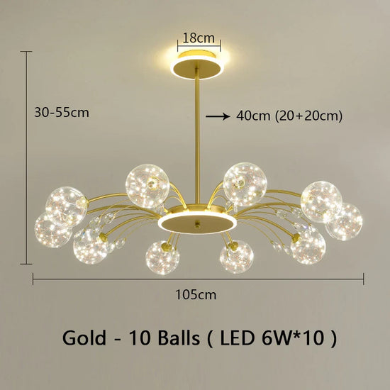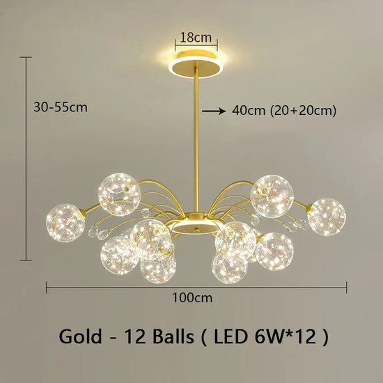 Lustre LED de Luxe en Fer avec Boules de Verre Étoilées