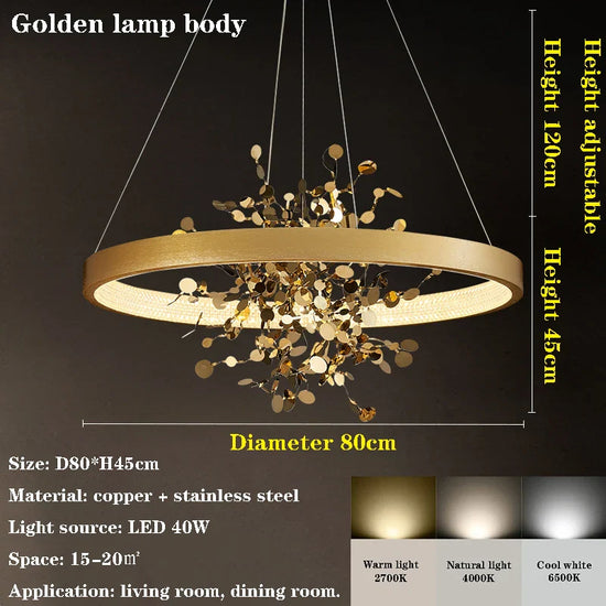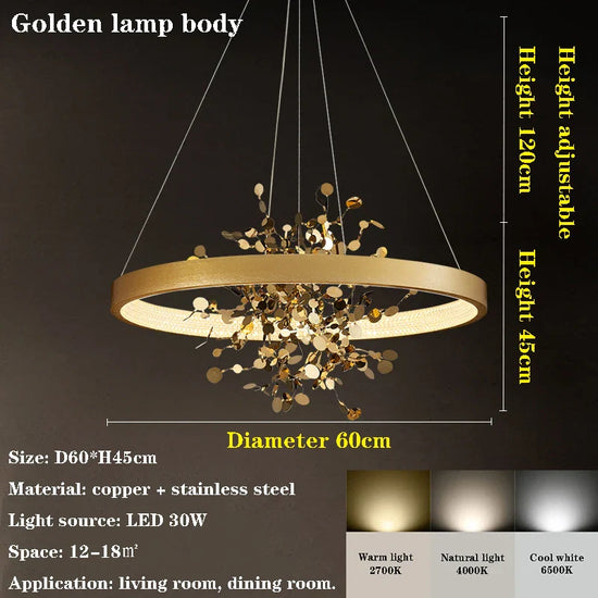 Lustre LED de Luxe Moderne en Cuivre pour Hôtel