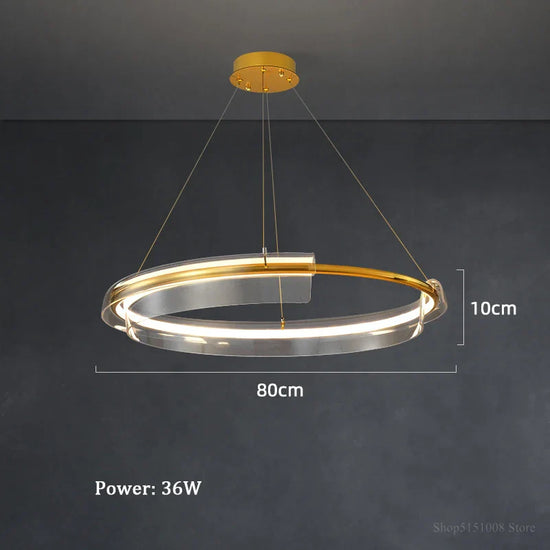 Notre lustre LED de luxe simple anneau dimmable transforme instantanément n'importe quel environnement en un espace moderne et accueillant. Que ce soit dans un salon, une salle à manger, une chambre ou un espace de travail, il vous garantira un éclairage adéquat et un charme indéniable.