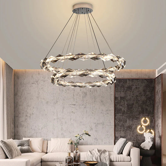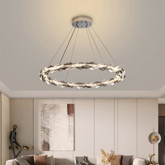 Illuminez votre intérieur avec notre lustre LED moderne en cristal de luxe décoratif. Ce chef-d'œuvre de design contemporain rehausse instantanément l'esthétique de votre espace de vie. Idéal pour le salon, la salle à manger ou la chambre, ce lustre conjugue élégance et fonctionnalité, faisant de chaque pièce un lieu resplendissant et accueillant. Avec ses lignes épurées et sa finition argentée en acier inoxydable poli, ce luminaire est parfait pour les amateurs de design sophistiqué à la recherche d'une touche de luxe moderne.
