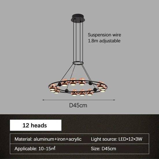 - **Matériaux de haute qualité** : Fait d'aluminium et de métal, ce lustre est conçu pour la durabilité tout en garantissant une esthétique moderne.