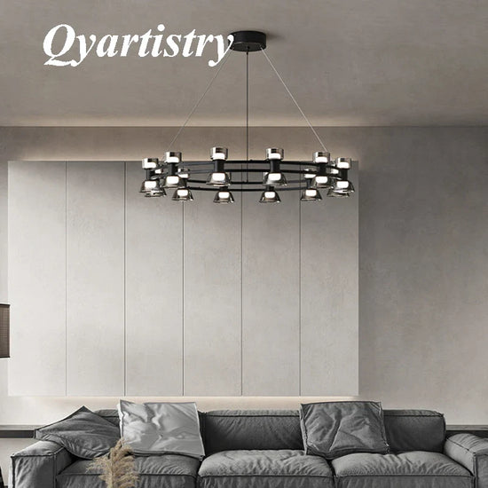 Transformez votre espace avec notre lustre LED postmoderne boule suspension luminaire en verre, une véritable œuvre d'art conçue pour rehausser l'élégance de votre intérieur. Ce luminaire, par sa construction soignée et son style moderne, sublime chaque pièce en diffusant une lumière douce et captivante. Conçu par la renommée marque Qyartistry, ce modèle contemporain se caractérise par des boules en verre suspendues à une structure en fer noir, créant ainsi un effet visuel à la fois chic et subtil.