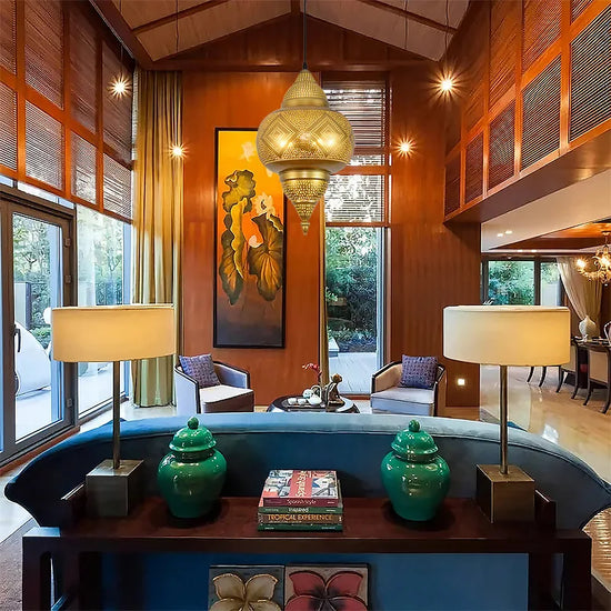 lustre led sandyha style asie du sud-est décoration intérieure dorée