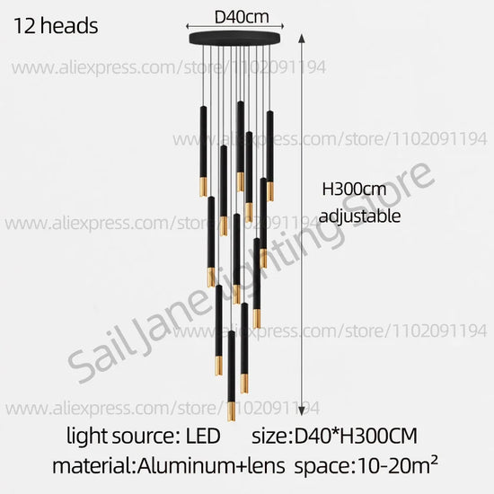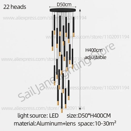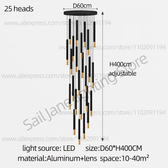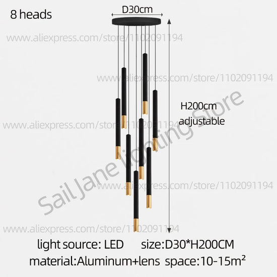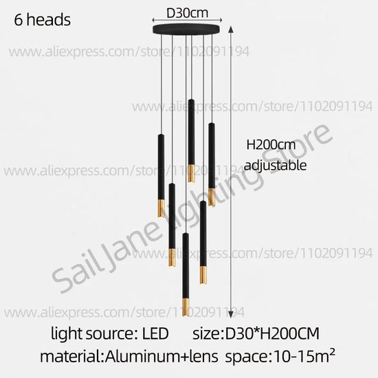 Lustre LED Tubulaire pour Éclairage Intérieur de Restaurant