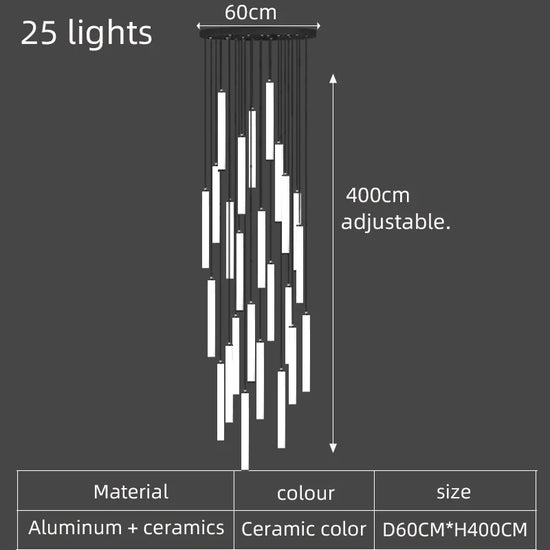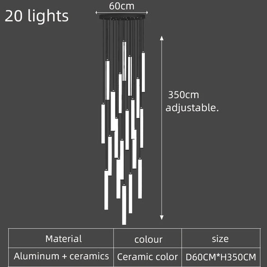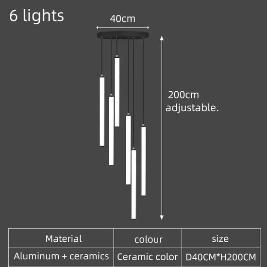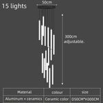 - Design Élégant et Moderne : Avec ses longs tubes en céramique et sa finition perforée, ce lustre offre une esthétique minimaliste et élégante qui s’intègre parfaitement dans tout décor moderne.