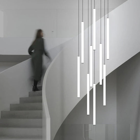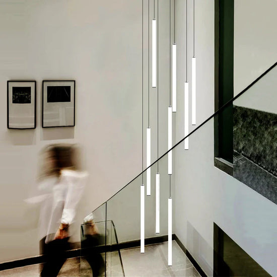 lustre long tube moderne pour villa nordique et hall d'exposition