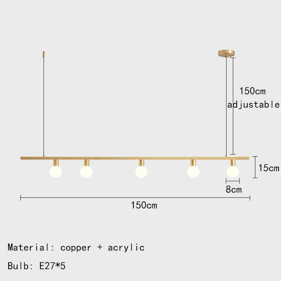 Avec ses cinq sources lumineuses, ce lustre minimaliste en laiton offre un éclairage d'excellence, parfait pour toutes vos pièces de vie. Alimenté par un courant AC avec une tension de 90 à 260V, il allie performance et durabilité.