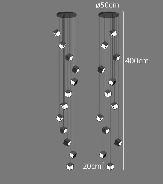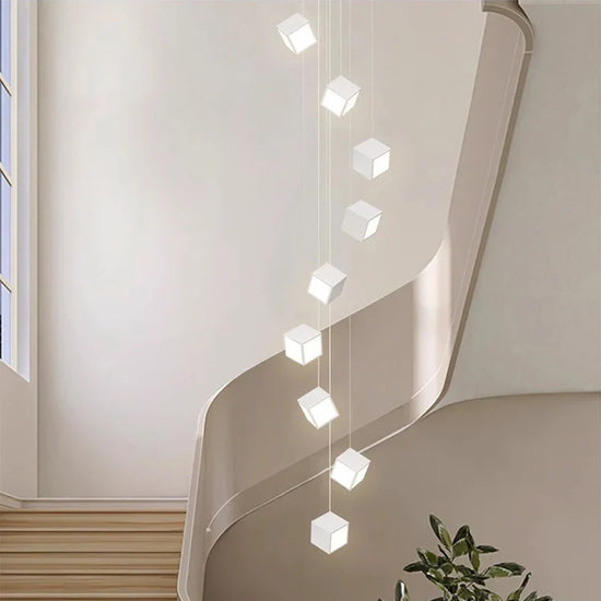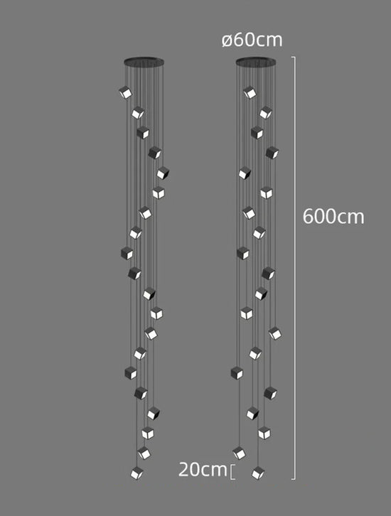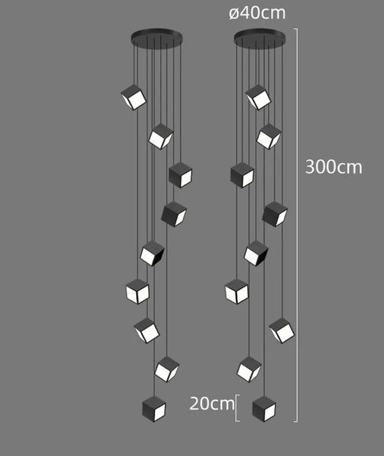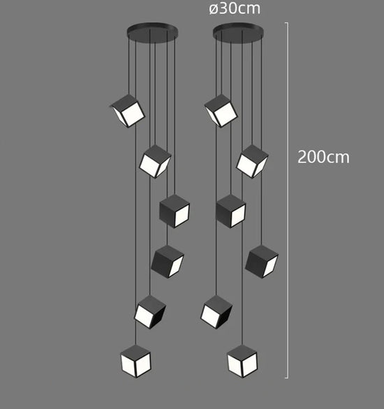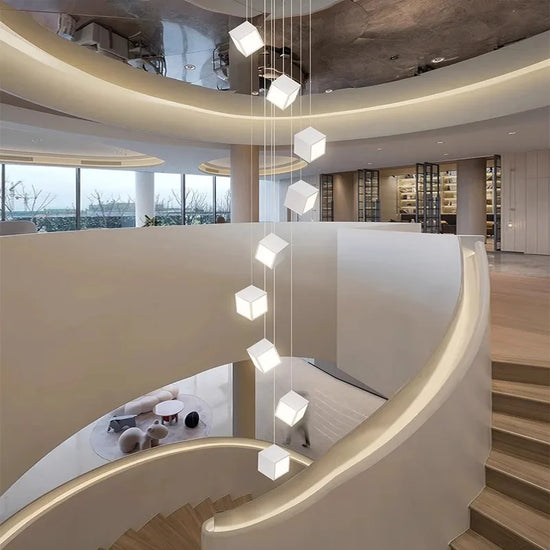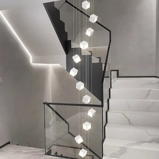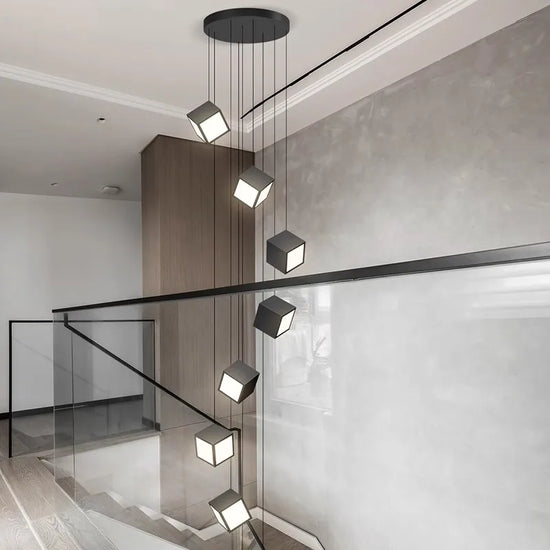 Transformez votre espace avec notre lustre minimaliste moderne pour escalier duplex rotatif, une pièce unique qui allie esthétique contemporaine et fonctionnalité. Ce luminaire époustouflant, conçu en forme de cube rotatif, s'intègre parfaitement dans un décor moderne, offrant une ambiance chaleureuse et sophistiquée. Que vous cherchiez à éclairer vos escaliers, votre salon ou même un hall d'hôtel, ce lustre attire l'attention tout en apportant une touche d'élégance minimaliste à votre intérieur.