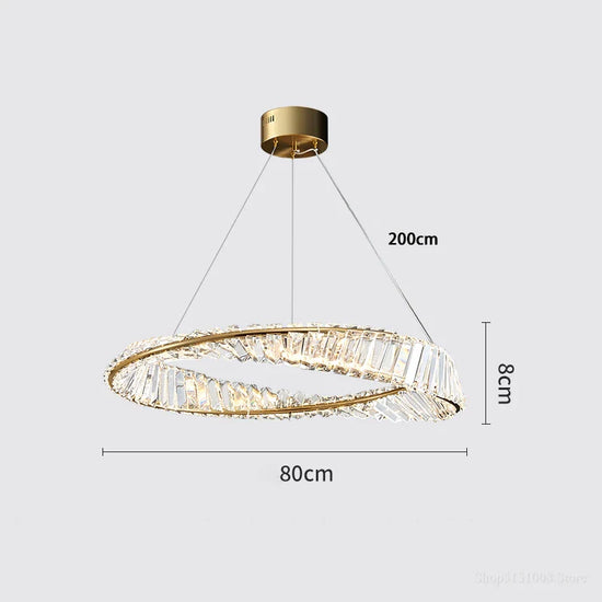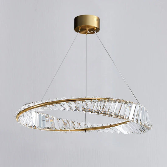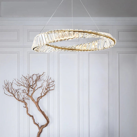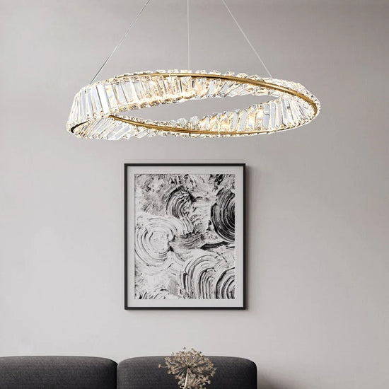 Lustre Moderne de Luxe en Cristal : Lampe Annulaire Suspendue