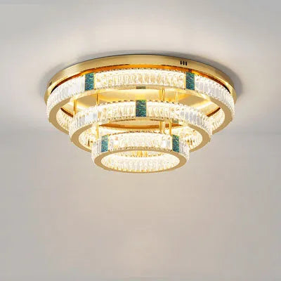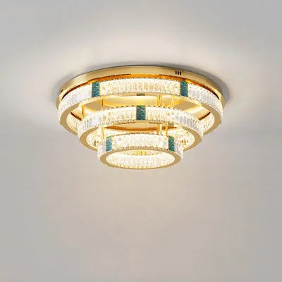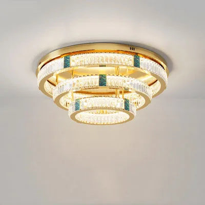 Lustre Moderne en Cristal Rond à 3 Couches avec LED