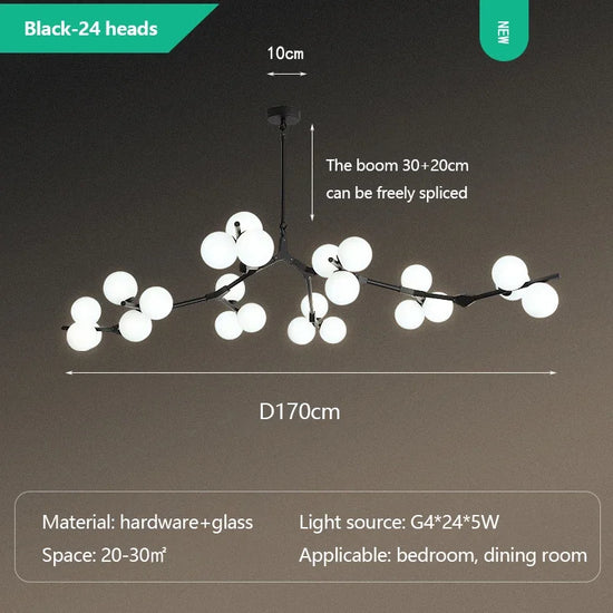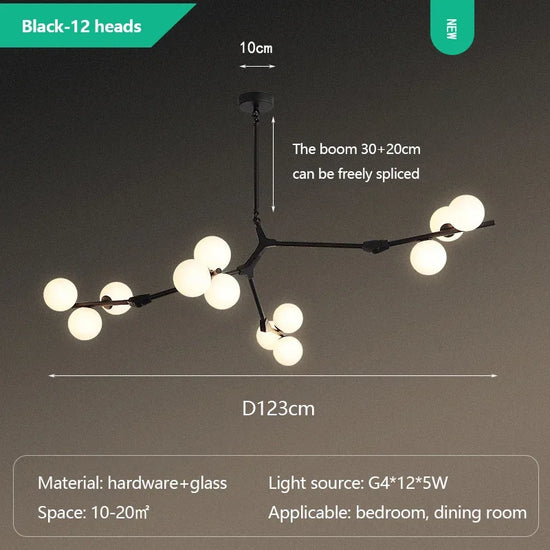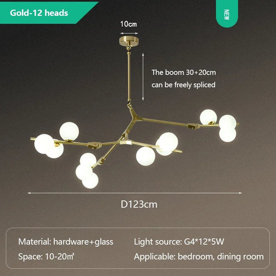 Découvrez le lustre moderne en verre avec branches LED suspendues de la marque SANDYHA, un chef-d'œuvre qui allie élégance et modernité pour sublimer votre intérieur. Ce luminaire est conçu pour devenir le point focal de votre pièce, que ce soit dans le salon, la salle à manger ou la chambre à coucher.