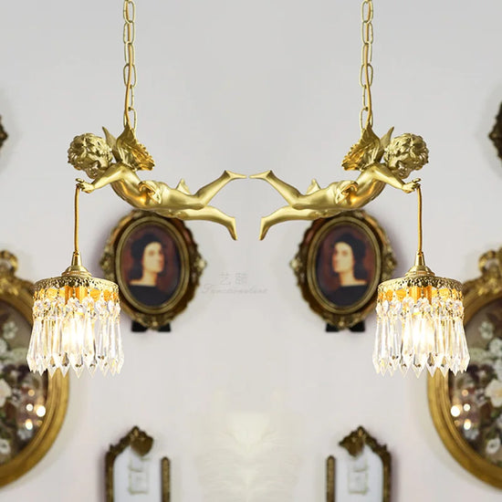 Lustre Moderne LED avec Ange en Cristal Médiéval Bronze : L'élégance au cœur de votre intérieur