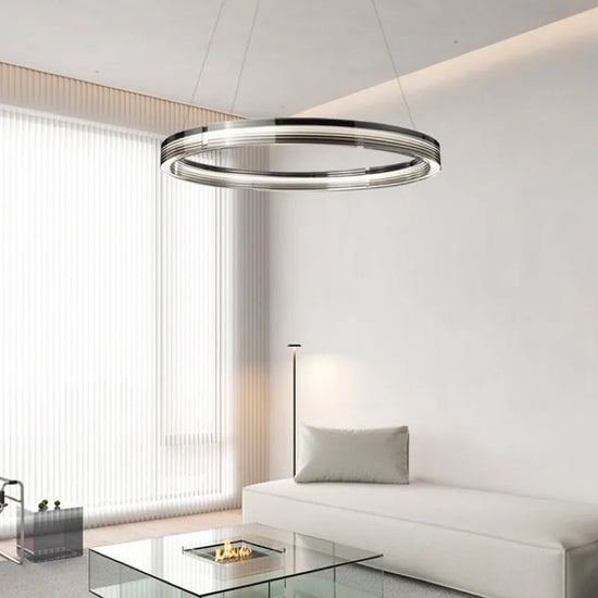 Découvrez notre lustre moderne LED circulaire design lampes suspendues décoratives, une solution d'éclairage sublime qui allie style contemporain et fonctionnalité. Ce lustre LED, parfait pour embellir n'importe quel espace de votre maison, que ce soit la salle à manger, la chambre ou le salon, est bien plus qu'un simple luminaire. Il s'agit d'un véritable objet de décoration conçu pour transformer votre intérieur. Doté d'un design épuré et moderne, ce lustre s'intègre harmonieusement à divers styles de décoration, tels que le style scandinave, industriel ou minimaliste, tout en apportant une touche d'élégance distincte.