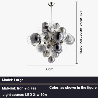 • Design Audacieux: Alliant la robustesse du métal et la délicatesse du verre en forme de bulles, ce lustre offre une esthétique unique et moderne.