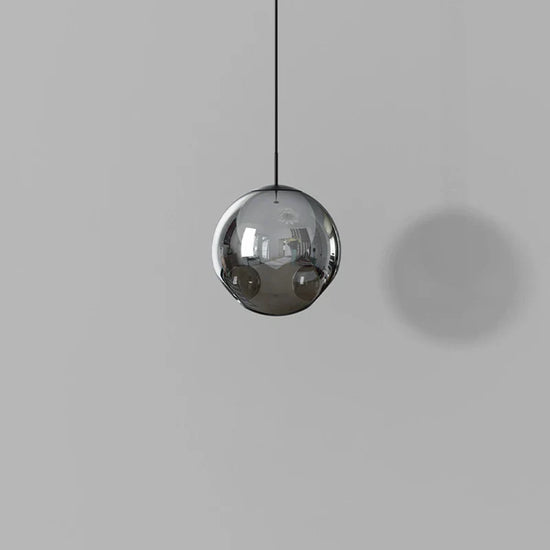 - **Design épuré** : Un abat-jour en verre doux gris suspendu par un cordon élégant, illustrant un minimalisme chic.