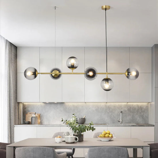 Le lustre nordique suspendu est doté de six sources de lumière, assurant une diffusion homogène et chaleureuse de l'éclairage sur une surface de 10 à 15 mètres carrés. Son emploi de matériaux de haute qualité, tels que le verre et la pierre, confère à cette suspension une durabilité exceptionnelle. De plus, son fini en fer contribue à créer une ambiance raffinée et sophistiquée.