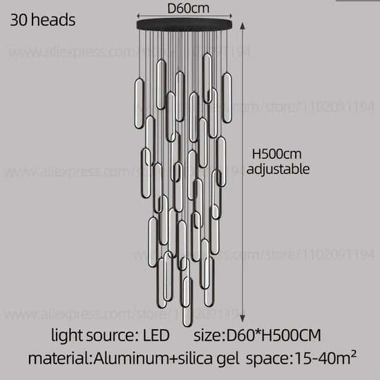 En plus d'apporter une touche d'éclat à chaque pièce, notre lustre ovale LED minimaliste pour duplex, hôtel, penthouse est idéal pour les espaces à haut plafond, tels que les duplex et penthouses. Il rehausse l'esthétique de votre environnement tout en assurant un éclairage de qualité supérieure.