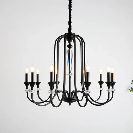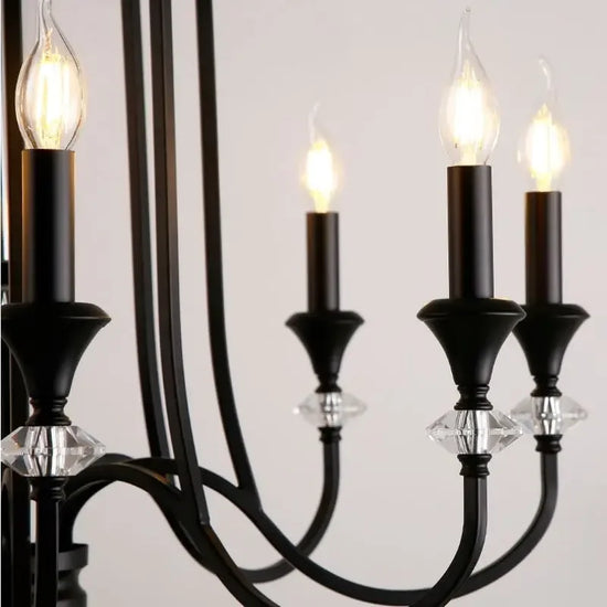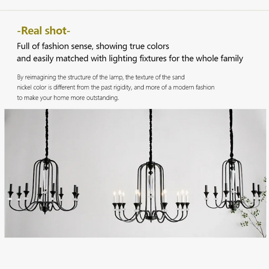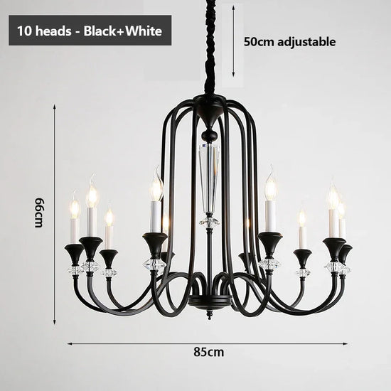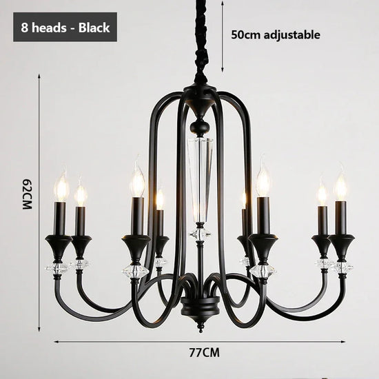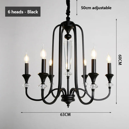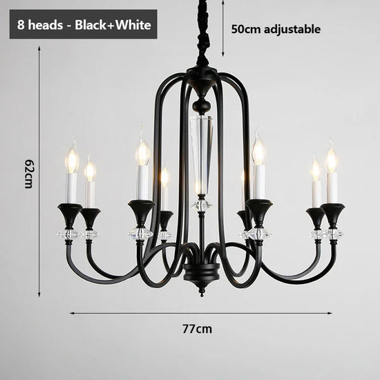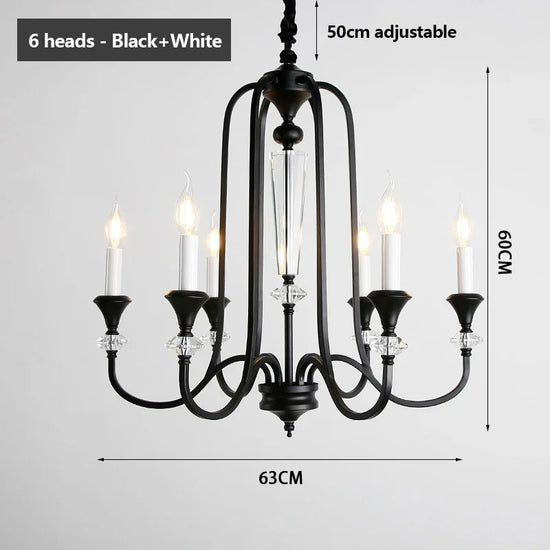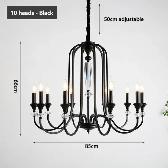 Ce lustre s'inspire des chandeliers traditionnels, avec une structure en fer robuste qui soutient de magnifiques pampilles en cristal. Les pampilles diffusent la lumière des lampes LED, créant un effet scintillant enchanteur qui capte instantanément le regard.
