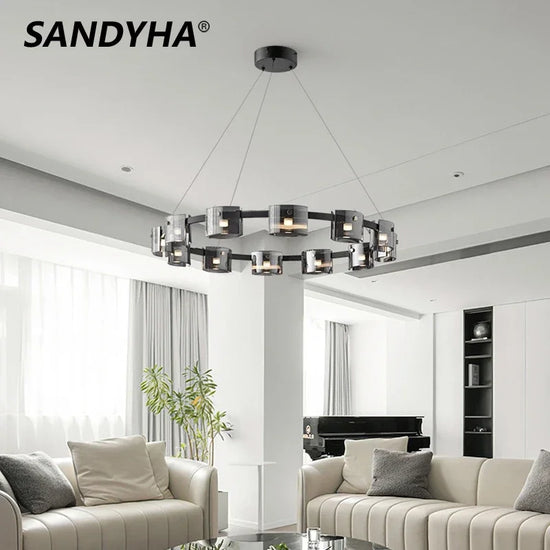 Lustre Sandyha Moderne Minimaliste Abat-Jour Verre LED Suspendu