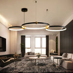 Lustre SANDYHA Multi-Anneau en Fer Noir LED Design Luxe