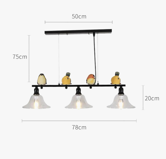 - **Conception artistique unique** : Ce lustre est inspiré du design nordique et intégré avec trois oiseaux élégamment perchés, représentant une œuvre d'art fonctionnelle et décorative.