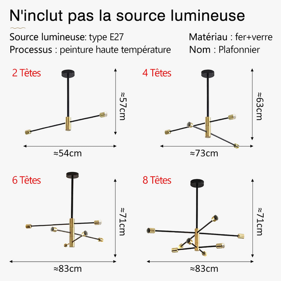 - Matériau de Qualité: Confectionné en fer avec une finition plaquée, ce lustre est aussi durable qu'élégant.