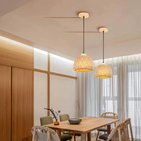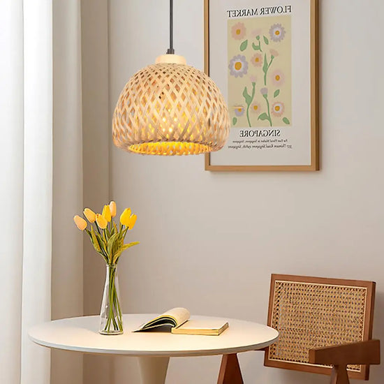 Lustre Tissé à la Main en Bambou avec LED Intégrée