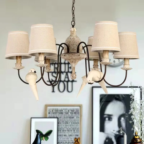 Pourquoi choisir notre lustre vintage américain en bois avec oiseaux en tissu