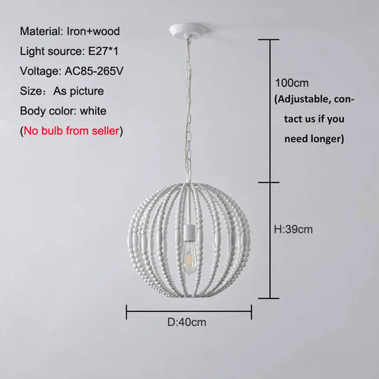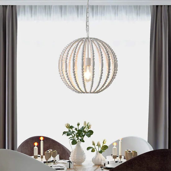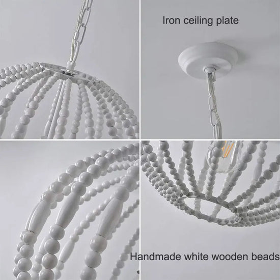 Lustre Vintage en Perles de Bois Style Américain Loft Campagne