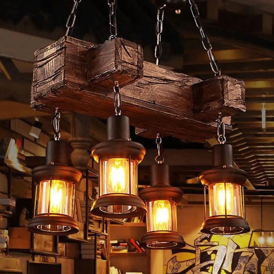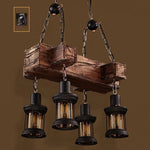 Lustre Vintage OUKANING 4 Lumières en Bois Suspendu Industriel