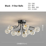 - Design Élégant : Conçu avec une structure en fer noir et or, et agrémenté de boules de verre clair et de cristal, ce lustre est un véritable joyau pour votre décoration.