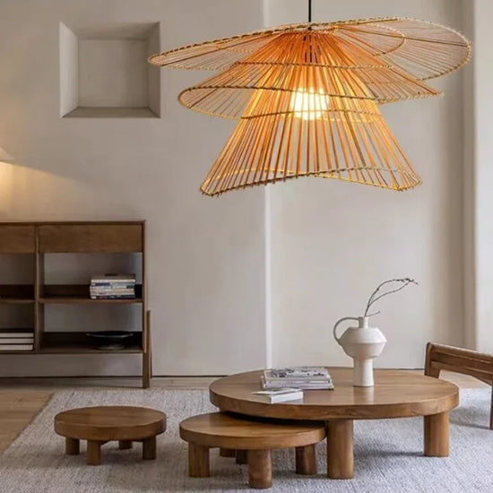 Lustre en rotin artisanal chic : L'élément lumineux incontournable pour sublimer votre intérieur