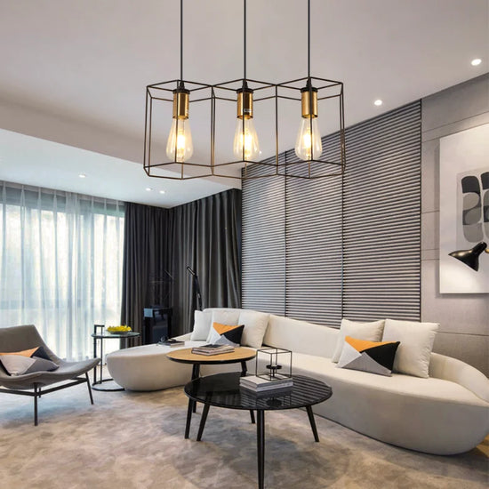 Lustre Créatif LED Moderne avec Cadre Métallique Géométrique