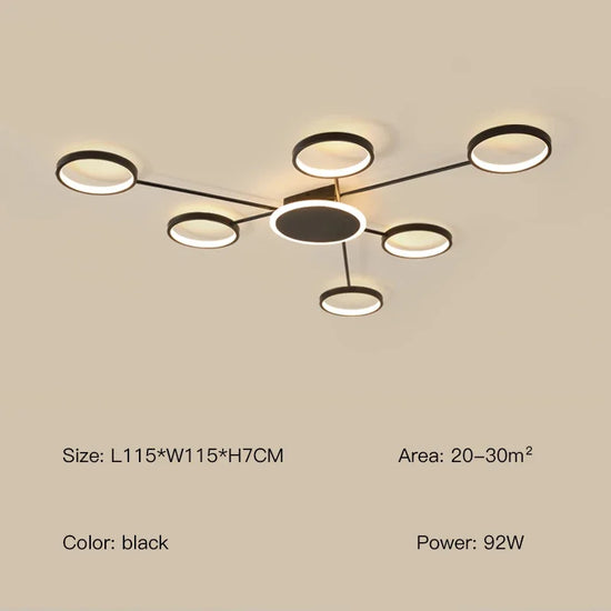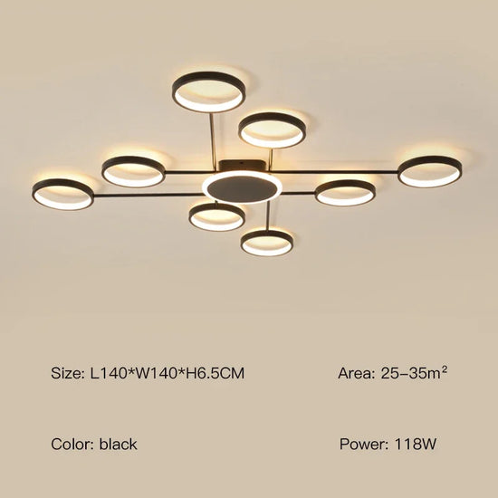 Élevez l'esthétique de votre intérieur avec notre lustre LED moderne design d'intérieur avec télécommande luminaire suspendu. Ce luminaire fait bien plus qu'éclairer votre espace; il incarne une fusion parfaite de design contemporain et de technologie d'éclairage de pointe. Doté d'une finition noire élégante et d'une télécommande pratique, ce lustre est idéal pour le salon, la chambre ou la salle à manger.