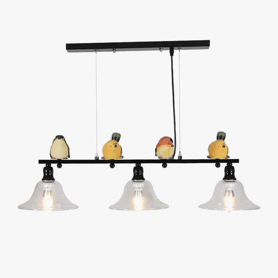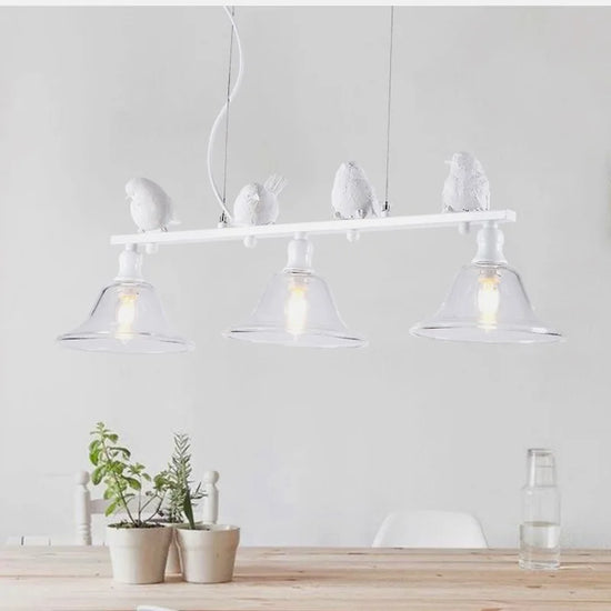 Lustre Nordique en Fer Verre et Résine avec Oiseaux pour un Espace Élégant