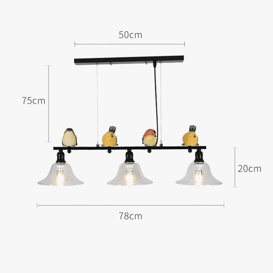 Conçu avec des matériaux de qualité supérieure, notre lustre combine du fer durable, du verre élégant et de la résine délicatement travaillée, symbolisée par les oiseaux esthétiques qui ornent la structure. Offrant une atmosphère apaisante et inspirante, ce lustre est parfait pour les amateurs de décoration à la recherche d'une pièce à la fois sophistiquée et chaleureuse.