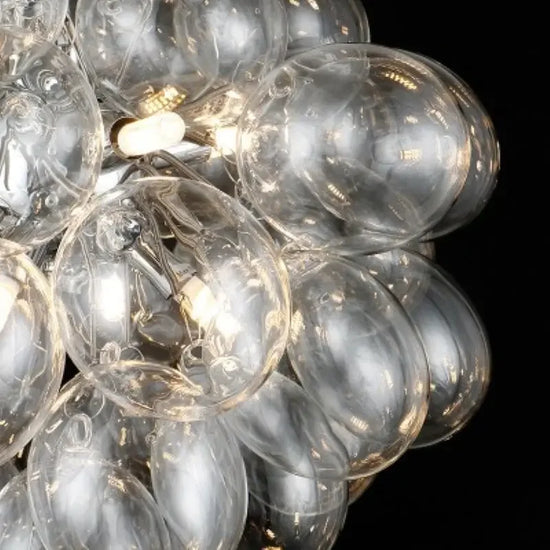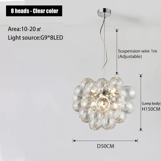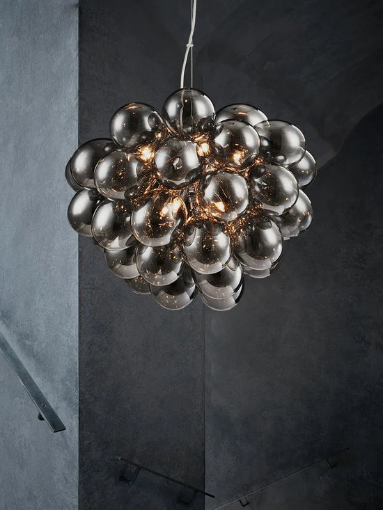 - Design Unique : Sa structure en bulle de verre colorée, disponible en blanc, gris ou champagne, offre une ambiance douce et sophistiquée.