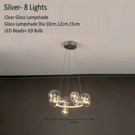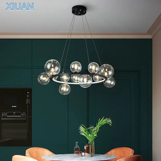 Découvrez le lustre en verre contemporain élégant, un chef-d'œuvre d'éclairage qui transforme votre intérieur en une oasis de sophistication. Ce luminaire élève toute pièce avec son design moderne et sa capacité à offrir une luminosité exceptionnelle. Conçu pour les espaces de vie contemporains, ce lustre est l'incarnation parfaite de la rencontre entre l'esthétique avant-gardiste et la fonctionnalité pratique, illuminant magnifiquement votre salle à manger, votre cuisine ou votre salon. Doté de finitions en verre transparent et rehaussé par des touches de noir et d'or, ce lustre deviendra le centre d'attention de votre maison, sublimant chaque détail de votre décoration.