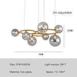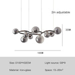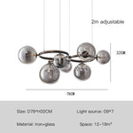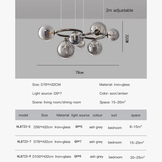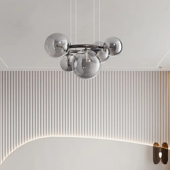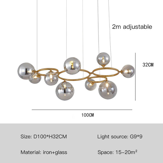 Le lustre contemporain se distingue non seulement par son esthétique, mais aussi par sa construction robuste en fer et son système LED innovant. L'intégration des boules en verre transparentes assure une diffusion agréable et homogène de la lumière, créant une ambiance cosy et moderne.