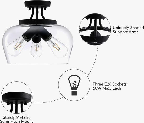 - Éclairage Polyvalent : Avec trois sources de lumière, ce plafonnier illumine généreusement un espace de 3 à 5 mètres carrés.