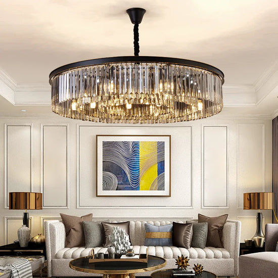 Rehaussez l'élégance de votre maison avec notre Plafonniers de luxe nordiques lustre en cristal, une pièce maîtresse impressionnante qui transformera votre espace en un lieu raffiné et contemporain. Doté d'un design sophistiqué en cristal K9, ce lustre décline un style entre modernité et classicisme avec son fini noir et or. Parfait pour la chambre ou le salon, cet éclairage souligne votre goût pour le luxe et votre penchant pour le design scandinave minimaliste et élégant.