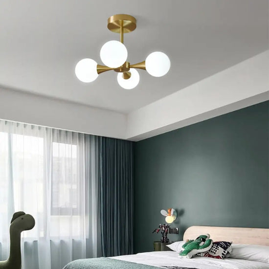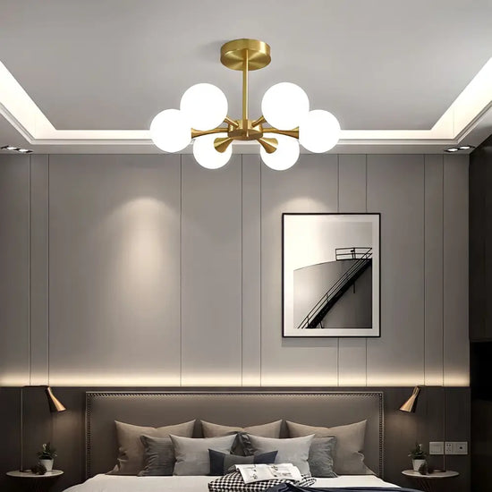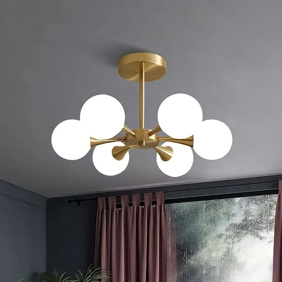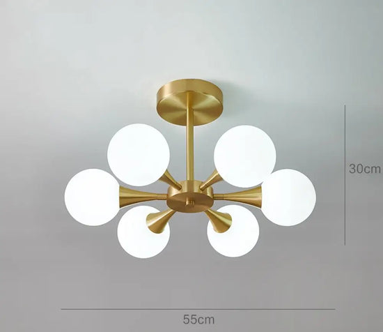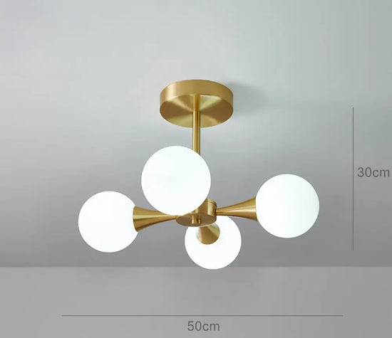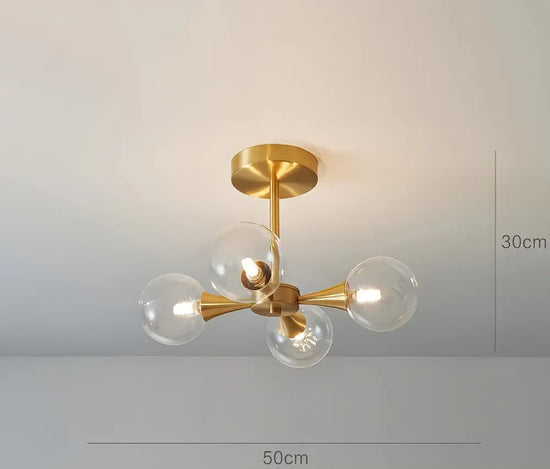 - Allumez l'électricité et admirez votre nouveau lustre nordique doré en boule de verre.
