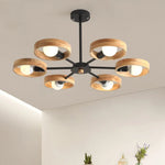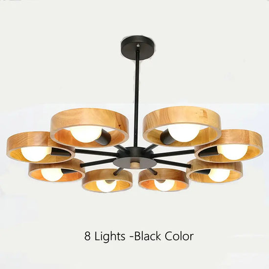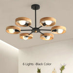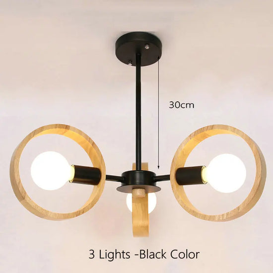 Lampe de lustre en bois nordique pour salon chambre salle à manger décor abat-jour en bois rond noir E27 Suspension