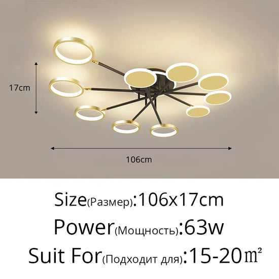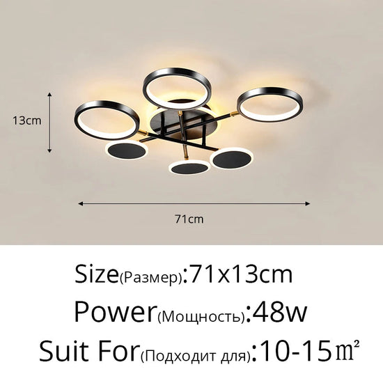 - Design Contemporain Unique : Des anneaux lumineux suspendus créant un effet visuel captivant, parfait pour les intérieurs modernes